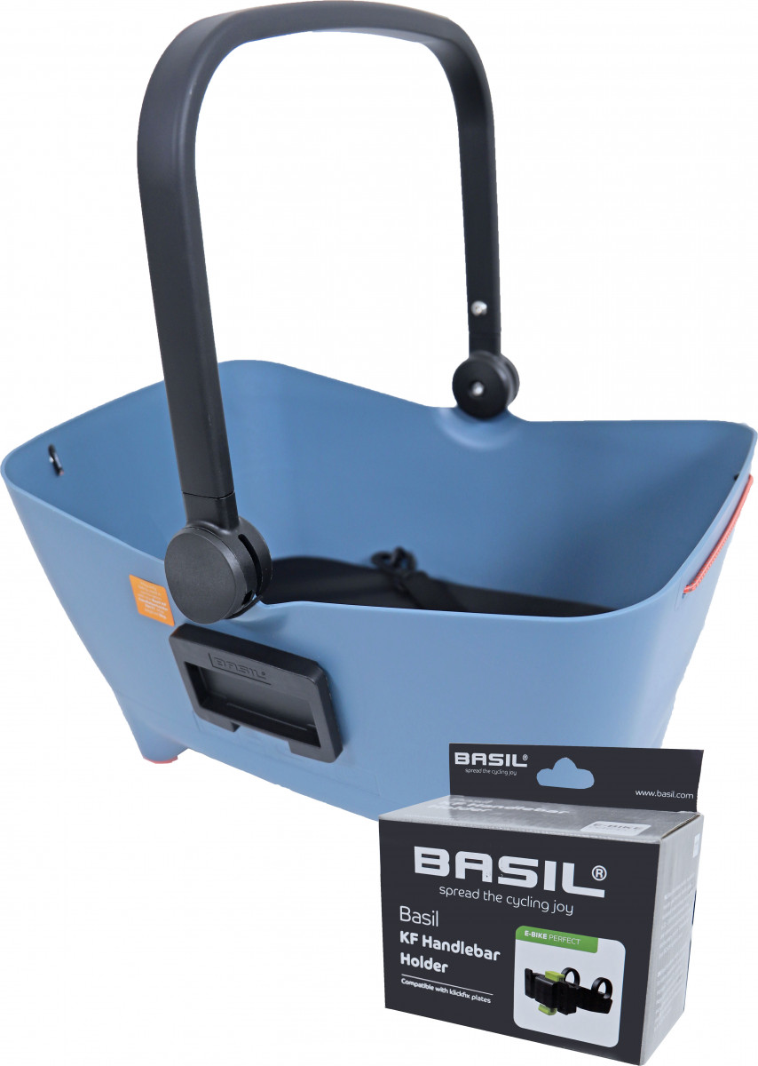 De Basil Buddy hondenfietsmand voor aan het stuur is perfect als u graag met uw hond fietst. De duurzame kunststof mand bevestig u eenvoudig voorop uw fiets en is afneembaar. Met de Basil Buddy hondenfietsmand voor voorop neemt u uw hond (of kat) overal mee naar toe. De blauwe mand is 45x32x22 cm dus perfect voor kleinere honden. De fietsmand wordt geleverd inclusief kussentje zodat uw huisdier comfortabel zit en bevat een riempje om hem veilig vast te zetten. De mand is gemaakt van niet-giftig en duurzaam kunststof. Zo houdt u de mand gemakkelijk schoon en kan hij tegen een stootje. Op naar veel veilige kilometers samen met uw hond! De Basil Buddy is eenvoudig te monteren met de meegeleverde Basil stuurbochthouder. Voor de veiligheid van uw viervoeter dient de Basil Buddy alleen in combinatie met de Basil stuurbochthouder bevestigd te worden. De Basil stuurbochthouder bevestigt u eenvoudig aan uw fietsstuur. Vervolgens klikt u de mand eenvoudig op dit systeem. Wilt u ook eens zonder uw viervoeter op pad? Dan klikt u de mand er net zo gemakkelijk weer vanaf. De Basil stuurbochthouder past op (bijna) alle fietsen. Ook op uw elektrische fiets dankzij de extra meegeleverde verbredingselementen. Uw hond extra beschermen? De buddy hondenfietsmand is uit te breiden met de Basil draadkoepel (021 3349), een handige draadkoepel die u over de Basil Buddy kunt plaatsen.
