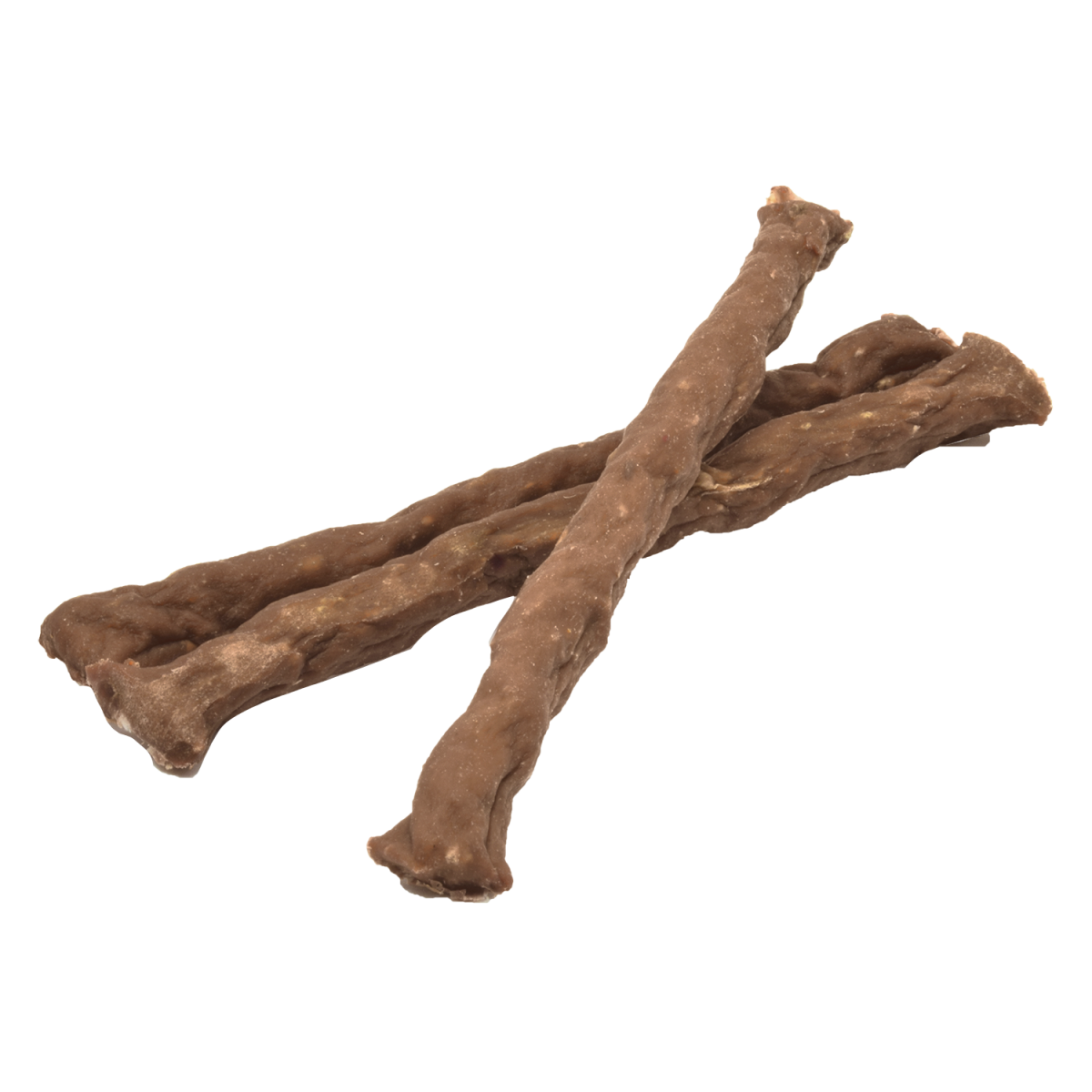 Gemaakt van spiervlees: Alleen het beste deel van het vlees wordt gebruikt, wat zorgt voor een smaakvolle en voedzame snack.