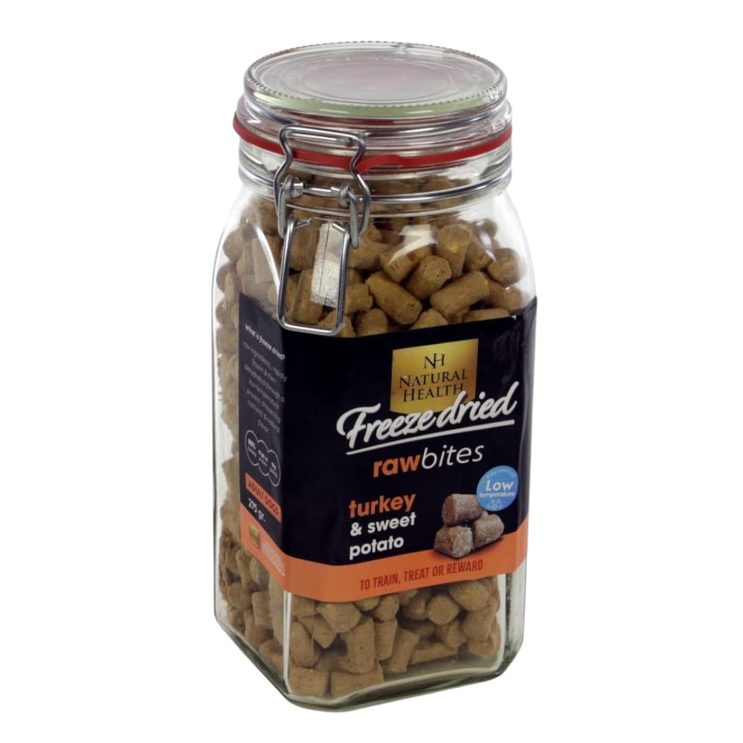 Kalkoen (80%), zoete aardappel (6%), wortel (4,5%), erwt (3%), appel (2%), aardbei (2%), mineralen (1,75%), bietenplup (0,23%), gedroogd zeewier (0,1%), gistproduct (als bron van prebiotische MOS en beta-glucanen, (0,075%),, gedroogde cichoreiwortel (als bron van prebiotische FOS, (0,075%), Glucosamine (0,05%), gedroogd meidoornblad (0,005%), chondroiti Sulphate (0,005%), yucca schidigera extract (0,025%), gedroogde paardenbloemwortel (0,005%), groene theepoeder (0,005%), gedroogd meidoornblad (0,05mg)